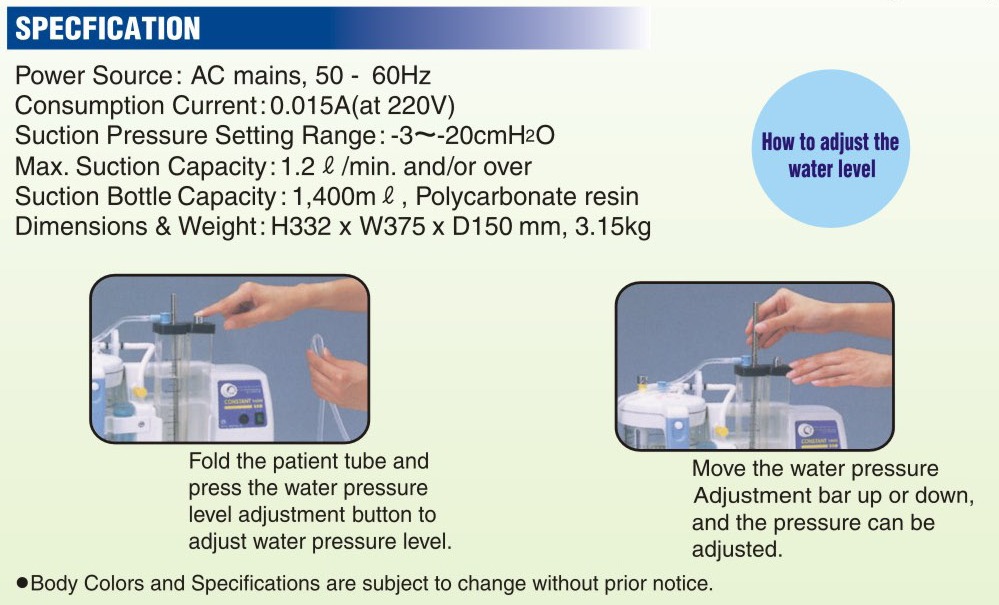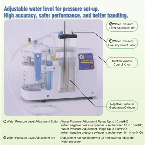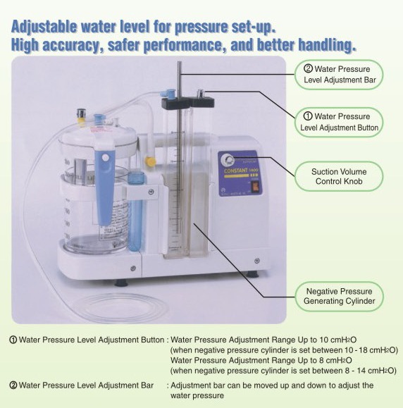 - Mực nước có thể điều chỉnh để cài đặt áp lực hút, với tính năng dễ sử dụng, áp lực chính xác và an toàn.